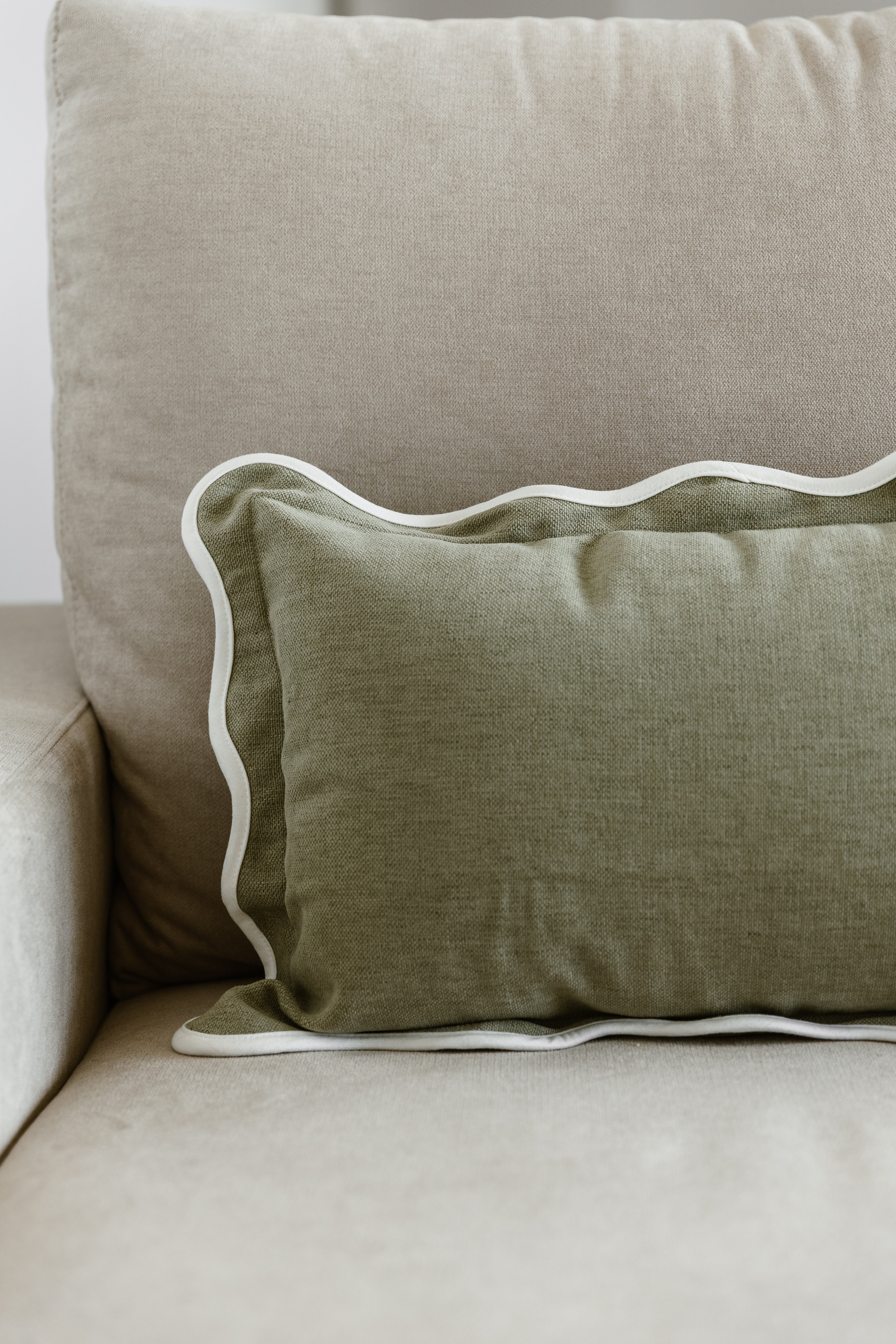 El cojín Chloe combina sencillez y carácter en una pieza que destaca por su ribete ondulado, un detalle que aporta movimiento y un aire artesanal al diseño.